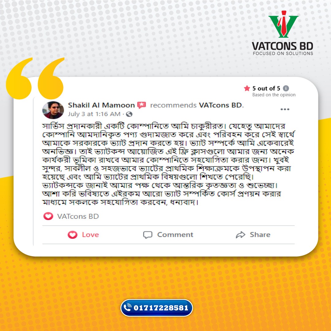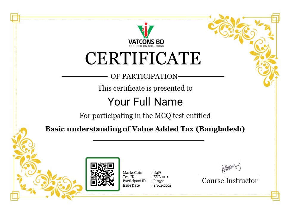 Certified By VATCONS BD Training Academy